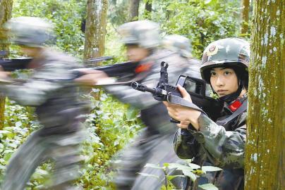 张绺在中缅边境的丛林里和战友进行设伏演练。