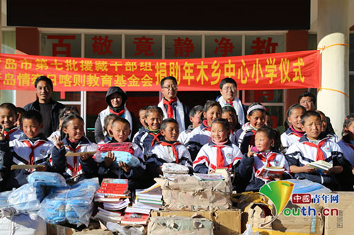 宋广伟参加捐助日喀则市年木乡中心小学仪式。本人供图