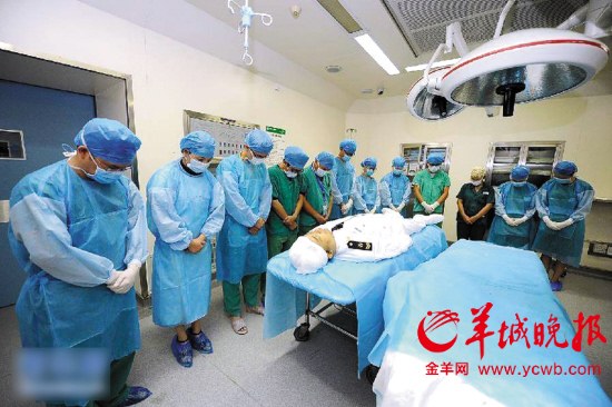 进行器官捐献之前,在场的所有医务人员为英雄默哀 (新华网)
