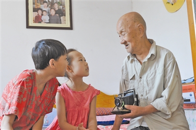 ⑥连日来,96岁的抗战老兵张宝宪接待了一批批的来访者,他找出当年缴获的日本相机,给家里的第四代讲解过去的经历。他历经抗日战争、解放战争等大小战斗175次,负伤32次,幸运地活下来。他对家族的后人寄予厚望,希望他们好好学习、好好工作。