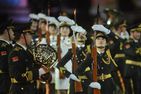 当地时间9月5日,俄罗斯首都莫斯科举行盛大活动,庆祝建城868周年,其中一年一度的“斯帕斯卡亚塔楼”国际军乐节是最大的亮点。中国人民解放军军乐团与女子仪仗队方阵应邀参加本届城市日开幕式表演,这是三军仪仗队女兵首次海外亮相,女兵们训练有素,英姿飒爽,成为一道亮丽的风景线。演出中,仪仗队女兵手持1.2米长(连刺刀)礼宾用枪表演的枪操更是引爆全场,掌声和尖叫持续整个表演过程。