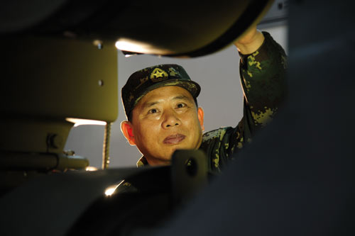 病榻中,尽管手术的刀口依然在隐隐作痛,与前来探访的战友交谈,他提的最多的,仍然是导弹的技术和装备整修情况;阵地里,尽管因癌症被切除了一页肺片,他穿着溽热的防护服,仍然像身边那些小他30岁的年轻人一样,爬竖井、钻坑道。谭清泉,这位战略导弹部队导弹专家、某导弹旅高级工程师,从军近40年,将自己的生命同共和国导弹事业紧紧连在一起。身患肺癌时依然惦念阵地,他说:“继续工作,就是对我最好的治疗。”