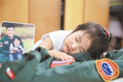 张超的女儿睡在爸爸生前最爱穿的飞行服上(7月18日摄)。新华社发
