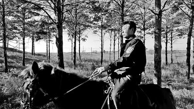 李东魁骑马巡查松林。刘勇摄/光明图片