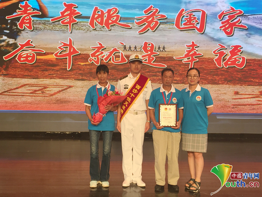 今年“八一”前夕,第六届西沙十佳天涯哨兵“英雄父母首都行”活动在京举行。郭煛作为西沙“十佳天涯哨兵”的一员,携父母和妻子来到首都北京。
