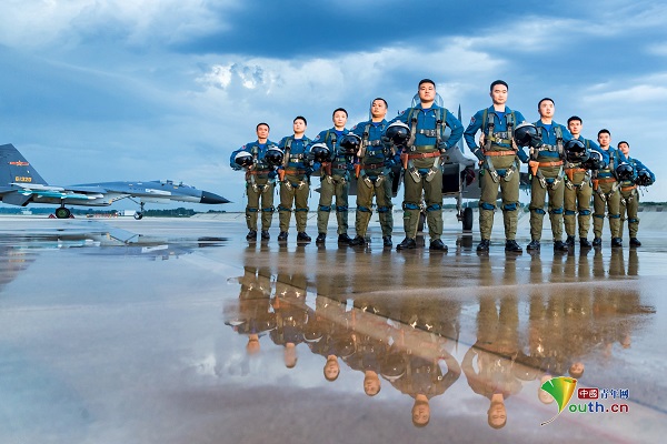 雨后初霁,空军“先锋飞行大队”合影。杨盼 摄