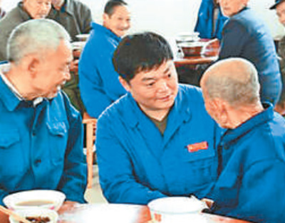 鲁鹏(中)在敬老院与老人们谈心。资料照片
