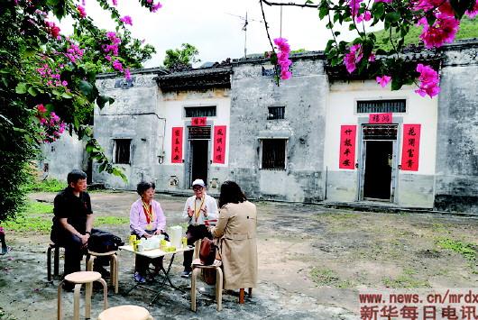 老战士在沙头角罗家大屋接受采访,回忆抗战往事(3月29日拍摄)。