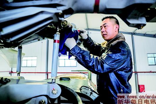 2019年1月4日,廖强正在维护直升机。张钦栋摄
