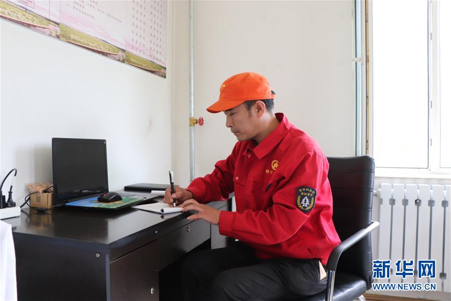 森林管护员陈庆武在管护站内填写森林管护记录(6月13日摄)。新华社记者 朱文哲 摄