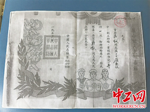 这一切,在立功喜报的“事迹”一栏,都化作了最简洁的文字,“该同志以重机枪歼敌四百余名……击落敌机一架,身负重伤还不愿下火线,配合步兵完成了任务,对战斗胜利起了重大作用……”