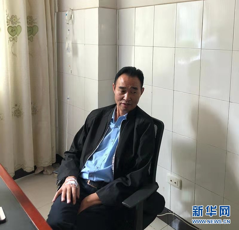 11月19日,城口县沿河乡副乡长付洪书,在办公室输液。新华网发(符美燕 摄)