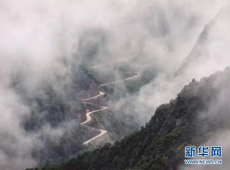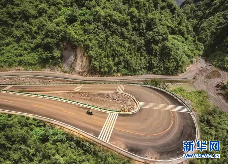 无人机航拍沿河乡硬化的水泥公路。新华网发(资料图)