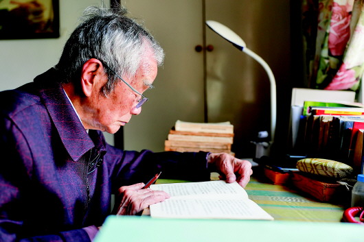 4月30日,金平在位于西南政法大学沙坪坝校区的家中伏案工作。记者黄伟摄