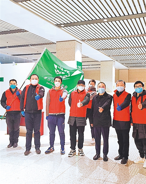 全国人大代表阎志(右三)与卓尔公益基金会志愿者在一起。(资料图片)