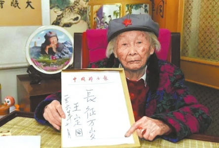 公开资料显示,出生于1913的王定国老人是最高龄的女红军。