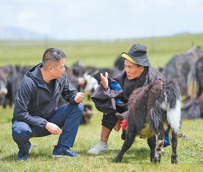 8月,草原迎来了一年中最美的季节。一大早,青海省玉树藏族自治州玉树市玛龙村第一书记张元太就和同事赶到牧民家里,调研牲畜生长情况。当看到一对小姐妹正在做暑假作业时,张元太走到跟前,充当起她们的“辅导老师”。