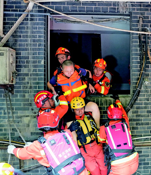 由于该区域流动人口多,仍有少量人员未按时撤离。19日早上,洪水抵近南滨路某医院。海棠溪街道干部在巡查时发现,医院里有9名医护人员和一名刚动过手术的患者被困。当地政府随即调派消防救援人员和冲锋舟,将他们安全转移。