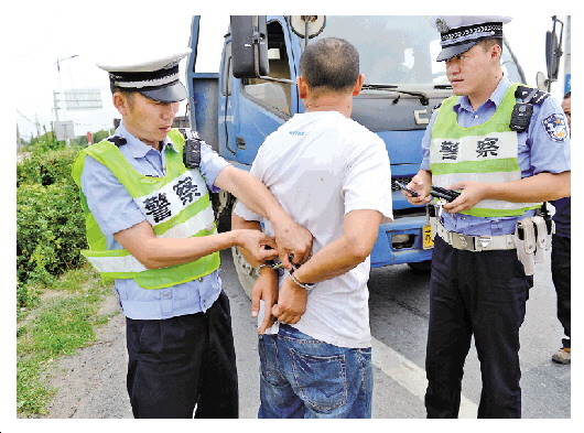 图① 朱勇(左一)与同事抓获网上在逃人员。