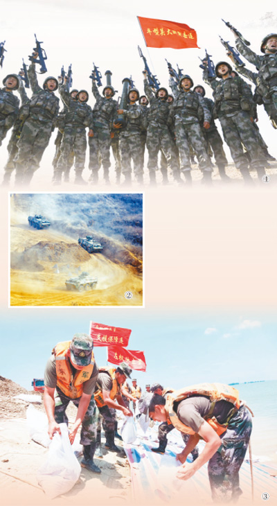 图③:7月下旬,第73集团军某旅“左权独立营”官兵投入抗洪救灾。 刘维鹏摄