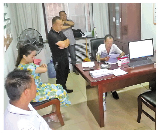 樊九平(右)调解熊某与高某打架斗殴案。