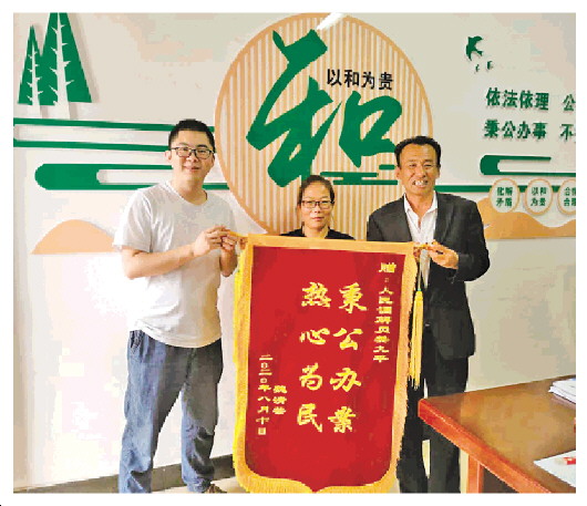 当事人为感谢樊九平(右)送来锦旗。