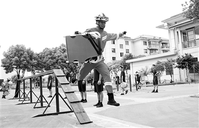 400米疏散物资操是训练中的瓶颈,也是整个对抗赛中难度最大的一项,考验的是人的意志力和耐力。在这项目中需要徒手跑50米,单人扛着60公斤重的假人再跑50米,然后双手提着重达30公斤的水桶跑100米、拎起20公斤重的煤气罐跑100米、再徒手跑100米。陈帅材一遍遍不懈地练习,最终达到整个过程用时仅1分37秒,比优秀成绩1分50秒还快了13秒。