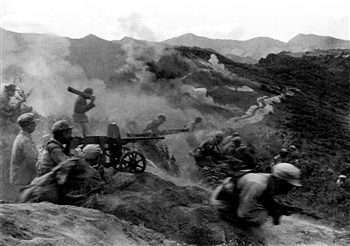 这是1951年第五次战役,战士们冲出阵地。