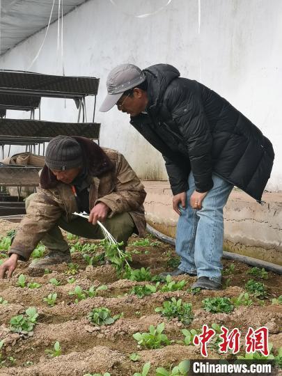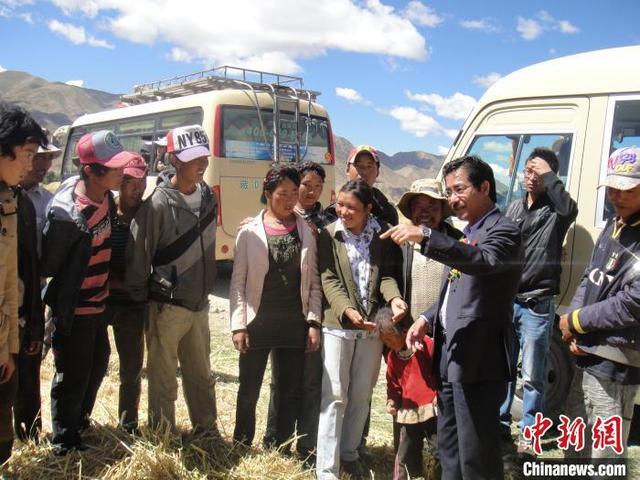 图为尼玛扎西(右三)在下乡途中与指导农民种植(资料图)。西藏农科院 供图