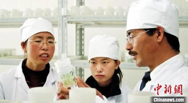 图为尼玛扎西(右一)从事青稞育种创新工作(资料图)。西藏农科院 供图