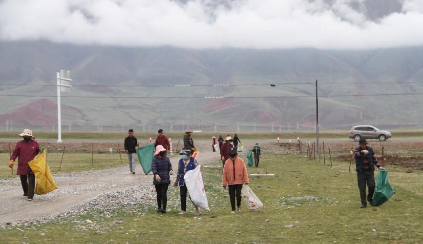 高原冬日,青海省玉树藏族自治州治多县多彩乡境内,远处巍峨的雪山脚下,广袤的草原早已褪去青色,许多绿色的身影活跃在草地上,一个个遗弃的塑料瓶、食品袋被他们捡起,寂静的草原变得生动起来。