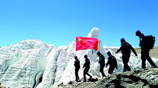 夕阳余晖,为界碑披上一层淡淡的金黄。董旭细细将界碑擦拭了一遍,用红色油漆和排笔为界碑上的“中国”二字描红。