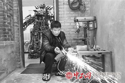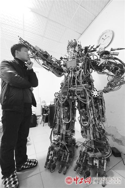 打工者上万零件打造机器人