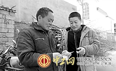 1月12日,陈武现给农民工送上拖欠15年的工钱。
