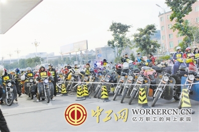 1月23日清晨,福建晋江荆山加油站,挤满了准备骑摩托车回老家过年的农民工。
