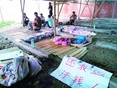 “运气好能在附近菜场捡点菜叶,再买些1元钱2个的馒头……”42岁的领头人李国培说,他们在此已居住了20多天,多日不见油腥,很多人熬不住,陆续走了。截至12日,仍有8名工友依然坚守在此。大家目标只有一个,要回属于自己的工钱。