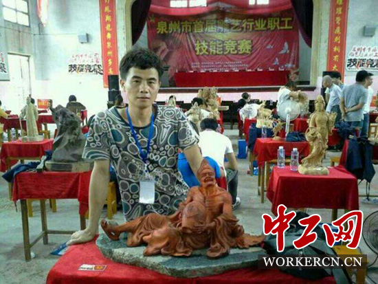 在泉州市首届雕艺行业职工技能竞赛中,孙晓东摘得修光工艺冠军。
