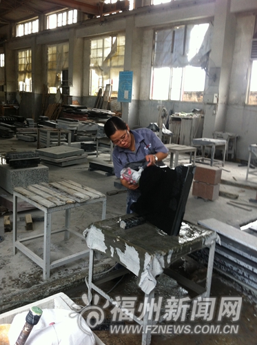 22日,记者在闽侯县国隆石制品有限公司二厂见到了王德芹,此时的她已经连续奋斗好几天,娇小的身体看上去有些疲惫。“刚完成一批订单,十几个货柜箱的墓碑已经按时通过轮船发往国外,今天终于可以休息了。”王德芹趁休息时间带记者参观了工厂的生产车间。