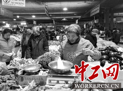 1993年,她和老伴带着15岁就辍学在家的儿子来北京谋生。在海淀区人民大学西门附近的部队干休所大院市场卖菜,一干就是15年,直到2008年市场拆了才来到这边。“搬过来之后,生意就难做了。”她告诉《工人日报》记者,她这个摊位每月要缴5000多元的摊位费,200元的卫生费,塑料袋还得从市场买那种两毛一个的。“难做也得做,人要吃饭,没钱就出来挣钱。就这个理。”一旁的老伴插了一句。