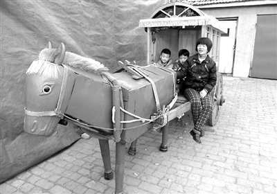 李景阳造出来的手工木马车。 本报记者 柳姗姗 摄
