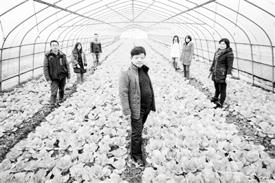 从异地种菜到回乡创办农业合作社,再到带领大学生搭建蔬菜电商平台,南京荟萃农业发展有限公司营销主管路晓华,用沾满泥土芬芳的双脚,走出了一条新型农民工的电商创业之路。1月29日,江苏南京溧水区和凤镇乌飞塘村,路晓华(前)与几名来公司创业的大学生合影。新华社记者 李响摄