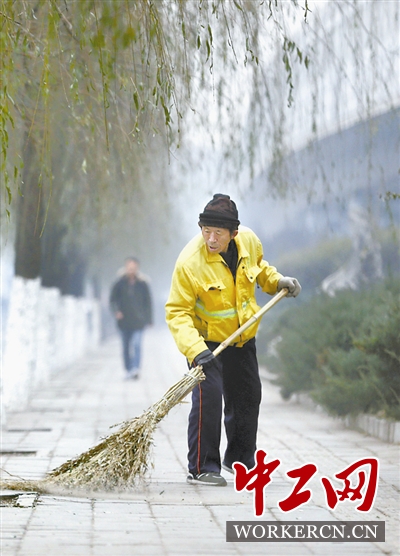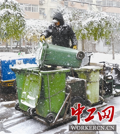 ③在北京之前的一场雪中,环卫工准时清理居民生活垃圾。中工网记者 于文国 摄