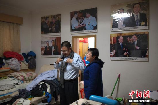 3月3日,朱良玉让妻子把自己的围巾找出来,准备前往驻地报到。 中新社记者 刘关关 摄