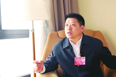 全国人大代表孙东林在驻地接受采访 特派记者彭年 摄