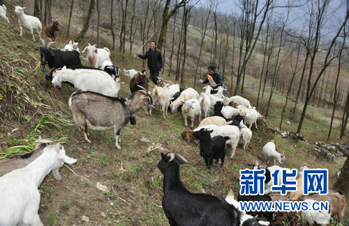 刘显万夫妻俩正在放养山羊。新华网发 刘恒旺 摄