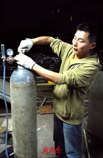 4月10日星期天,新湖南记者结束采访时已经将近晚上8点,彭孝良返回工棚,准备夜间加班