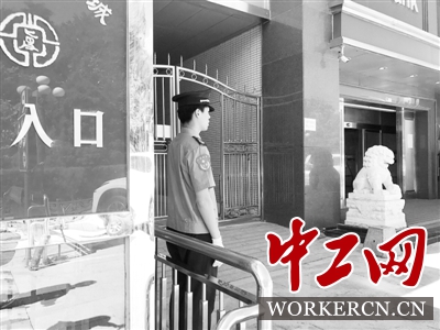 5月24日9时,北京复兴门外大街一处写字楼前,一名保安在站岗。