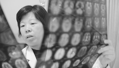 图为2013年12月24日在白求恩国际和平医院,张笋在观察患者脑部CT影像。新华社记者 王 民摄