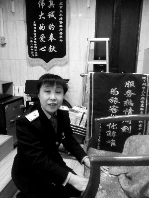 杨爱今指着那面去年4月送来的锦旗称,“这位大哥来北京治病,一年三个月往返了四五次。第一次碰见他是在售票厅,他戴着大口罩,右脸不太对劲儿。”后来,杨爱今了解到这是位鼻癌患者,刚做完手术,想买票尽快回满洲里却没买到,她当即表示:“你们先回去,留下联系电话,一旦有退票、改签的我帮你们买。”看到患者心情有些抑郁,杨爱今特意嘱咐他,“大哥,什么都别想,您这病不严重,一定得吃饭,不吃我就不帮忙买票了!”从那以后,杨爱今就叫这位姜先生大哥,“他到北京站下火车第一个就要见我”。