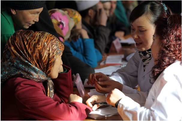 蓝晓林生性活泼开朗,乐于助人,经常参加各类公益活动,乐于奉献,曾获得过“温州市优秀青年志愿者”的称号。援疆一直是她的一个梦想。新疆在她的印记里是那么的广袤而神秘,内心充满了对这片土地的向往和期待,茫茫戈壁、长河落日、铁马秋风、沙漠胡杨、丝绸之路、楼兰古国,能歌善舞的人民,牛羊成群、瓜果飘香......怀揣着这一梦想,当她得知开始第八批援疆专业人才开始报名时,便揣着忐忑不安的心情与丈夫商量报名援疆的事情,内心深怕丈夫不同意。但出乎意料的是,丈夫对她报名援疆的想法给予了莫大支持。“去吧!那一直是你的梦想,当年汶川大地震你就跃跃欲试想去援川,现在组织上有这个机会你就去报名由组织遴选吧。家里有我呢,你有放心吧”。丈夫的一番话,让她感动得一夜未眠。也许是真心感动了上苍,她终于成为了一名援疆医生。也许是上天安排的一次考验,让她苦其心志。临行出发援疆的8天前,一个又冷又湿的夜晚她不幸遭遇车祸造成脑震荡和左侧锁骨骨裂,骨科专家建议需要休息三周以上,但恰巧的是8天后援疆队伍就要出发赴杭培训,随后赴疆开始新的履程。但她没有太多顾虑,忍着伤痛毅然地随着援疆队伍一起出发了。也许又是上天的眷顾,或许是平时坚持体育锻炼的结果,加上援友们一路悉心照顾,她的伤好得出奇的快。在阿克苏浙江省第八批援疆干部人才培训期间,她用手机拍下了省指挥部入口墙上这样一段话:“弘扬浙江精神,创造援疆业绩,特别能学习,特别能吃苦,特别能干事,特别能团结,特别能自律,特别能奉献。”并以此作为她援疆的座右铭。